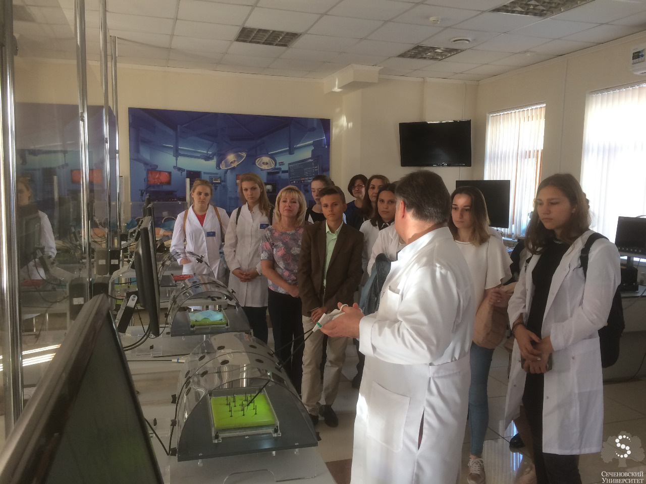 Экскурсия началась возле памятника И.М. Сеченову и продолжилась в Музее истории медицины. Сотрудники музея рассказали об этапах развития медицины в нашей стране и известных врачах и ученых, чьи имена связаны с историей университета. После небольшой прогулки по Аллее жизни экскурсанты перешли в Учебный центр врачебной практики «Praxi Medica»Сеченовского университета, где их встретил директор Реваз Харчилава. Он рассказал о возможностях центра, продемонстрировал оборудование, на котором врачи отрабатывают практические навыки проведения операций. Завершило экскурсию занятие в лапроскопическом зале, где школьники смогли сами попробовать провести ряд манипуляций на устройствах.