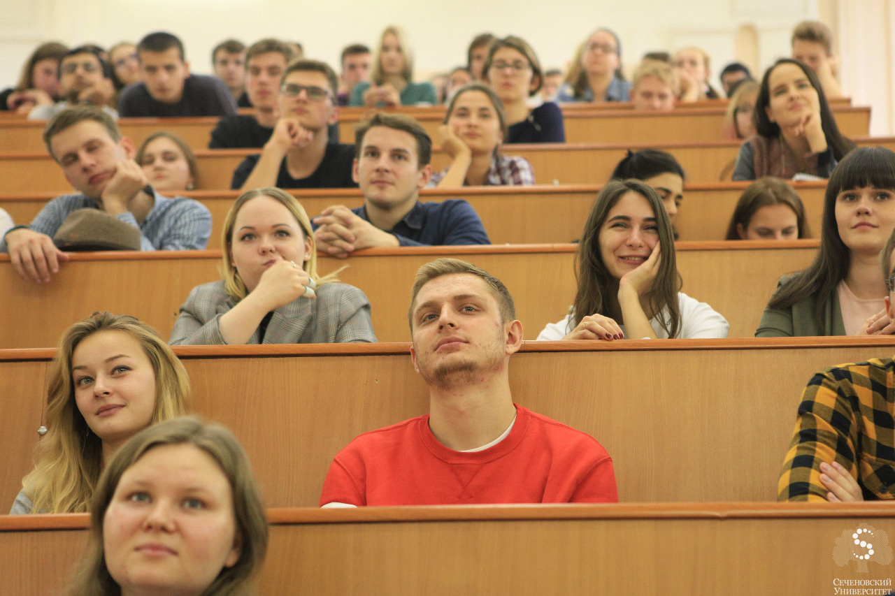 Узнать из первых уст о специфике работы футбольного врача и о подготовке сборной к Чемпионату мира пришли студенты, аспиранты, ординаторы Первого МГМУ им. И.М. Сеченова, а также школьники «Медицинского Сеченовского предуниверсария».