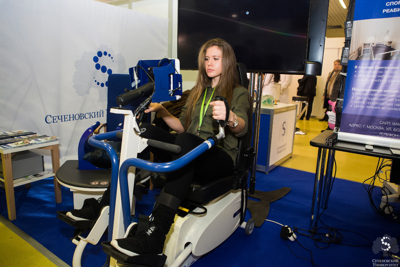 Центр медицинской реабилитации Сеченовского Университета презентовал возможности виртуальной реабилитации пациентов после инсультов, ортопедических операций, политравм. По словам директора Центра Константина Тернового, «с помощью программы виртуальной реабилитации пациент может проходить восстановительное лечение в домашних условиях в тот момент, когда специалисты через интернет контролируют выполнение упражнений, результаты, и, при необходимости, усложняют программу». На выставочном стенде была также представлена отечественная разработка для матрично-ритмовой терапии, которая помогает при спастических синдромах, при повреждениях мышц и суставов.