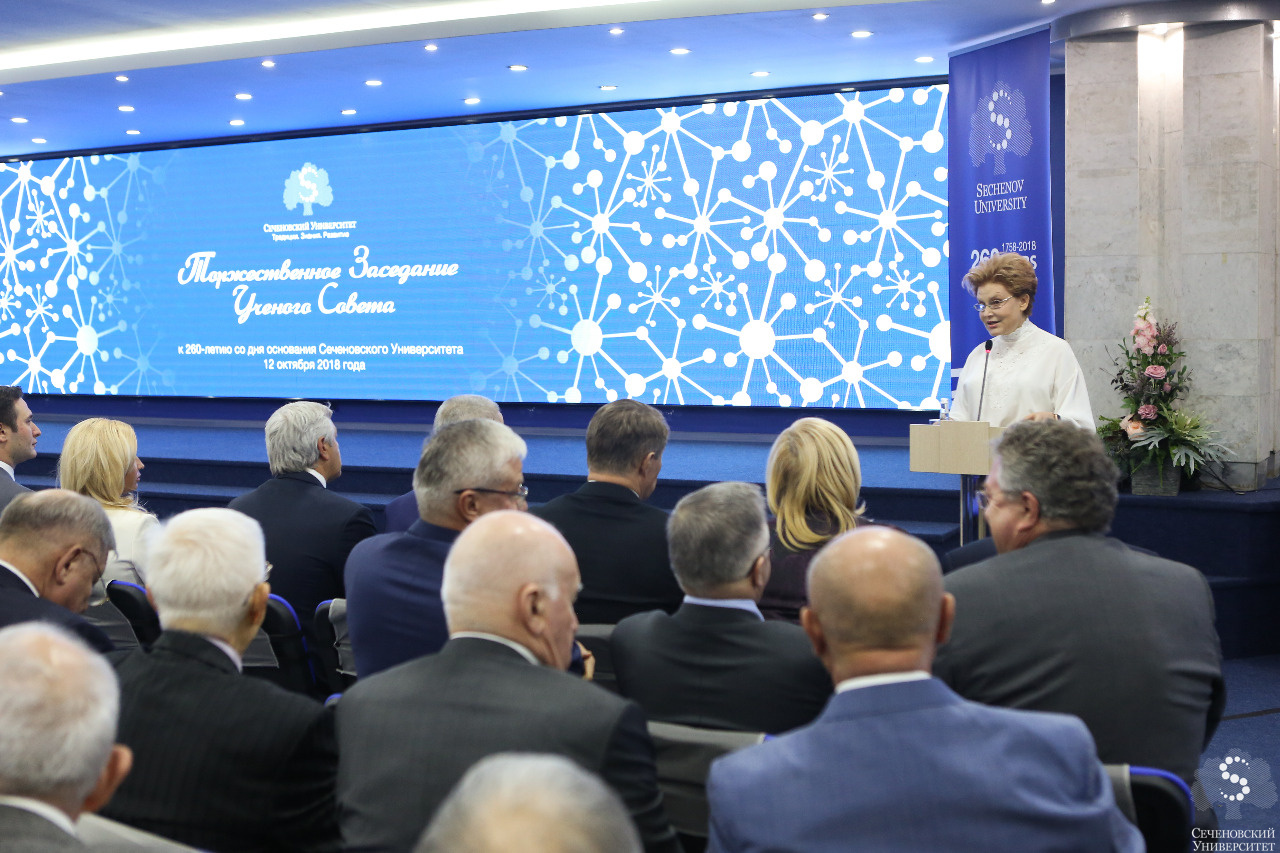 12 октября 2018 года состоялось торжественное заседание Ученого совета Первого МГМУ им. И.М. Сеченова, посвященное 260-летию вуза. В расширенном заседании приняли участие члены Ассоциации «Совет ректоров медицинских и фармацевтических вузов России», иностранные гости, сотрудники и представители студенческого самоуправления.