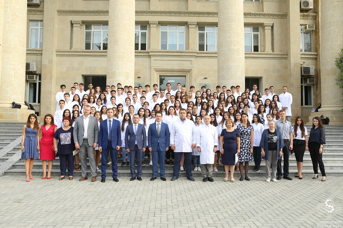 С приветственным словом выступил Дмитрий Морозов, который поздравил всех студентов с праздником, пожелал удачи, дальнейших успехов и новых идей. Профессор Азиз Алиев, поздравив первокурсников с началом учебного года, рассказал об истории учреждения филиала. Он отметил, что Бакинский филиал создан по инициативе Первого вице-президента Азербайджана Мехрибан ханум Алиевой. На церемонии открытия в 2015 году присутствовали министр здравоохранения Вероника Скворцова и ректор Сеченовского университета Петр Глыбочко. Цель создания филиала — совершенствование медицинского образования в Азербайджане, расширение связей в этой области с престижными образовательными центрами мира, а также удовлетворение желания граждан страны получать образование в медицинских учебных заведениях России. В Бакинском филиале ведется подготовка по специальности «Лечебное дело». Общее количество студентов на четырех курсах составляет 453 человека. Количество абитуриентов, подавших заявление в этом году, составило 234 человека. По результатам проведенных вступительных экзаменов 125 человек поступили на первый курс.