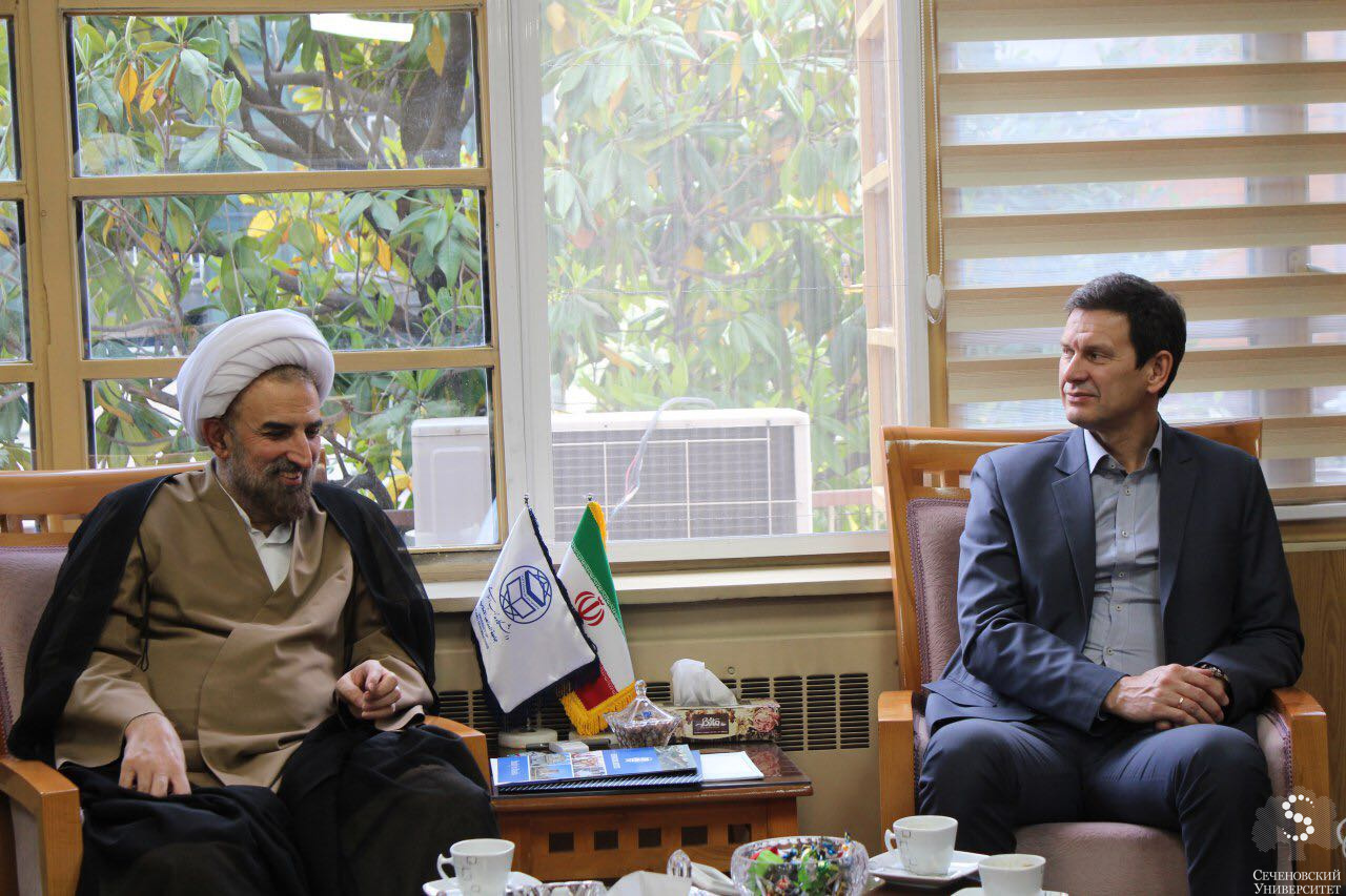 В рамках визита в Тегеран прошли переговоры с руководством Университета исламских конфессий, а также представителем Министерства иностранных дел Ирана Махмудрезой Мозаффари. В частности, обсуждалось создание на базе иранского университета совместного Центра изучения русского языка и подготовки к поступлению в медицинские вузы России. Это позволит на практике приблизиться к реализации концепции образовательного континуума «школа-университет-клиника» для иностранных обучающихся.