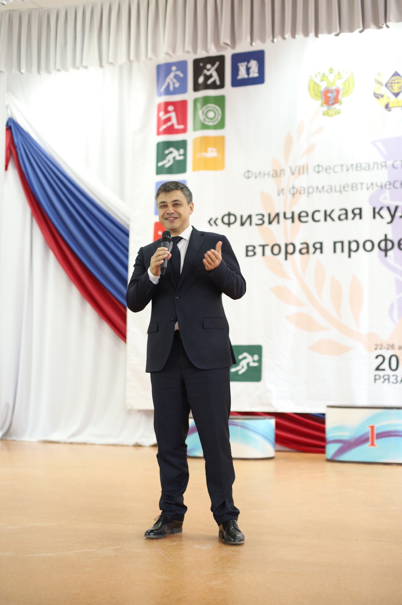Ректор Рязанского государственного медицинского университета имени И.П. Павлова, профессор Роман Евгеньевич Калинин зачитал приветственный адрес от министра здравоохранения Российской Федерации Вероники Игоревны Скворцовой и пожелал спортсменам удачно пройти все испытания, не останавливаясь на достигнутых спортивных победах.
