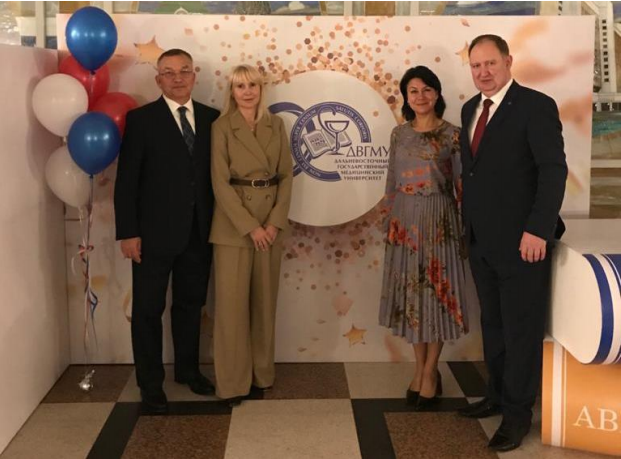 Многое было сделано за 90 лет и сегодня коллектив ДВГМУ направляет все усилия, чтобы следовать лучшим традициям отечественной медицинской школы, обеспечивать высокие стандарты образования, внедрять современные образовательные технологии. Поздравляю преподавателей, сотрудников, студентов, ординаторов, аспирантов, слушателей, ветеранов и выпускников, - всех нас с 90-летием со дня основания Дальневосточного государственного медицинского университета – нашей Alma Mater! Желаю крепкого здоровья, профессиональных успехов, новых научных и педагогических достижений, благополучия, мира и добра! С праздником!».