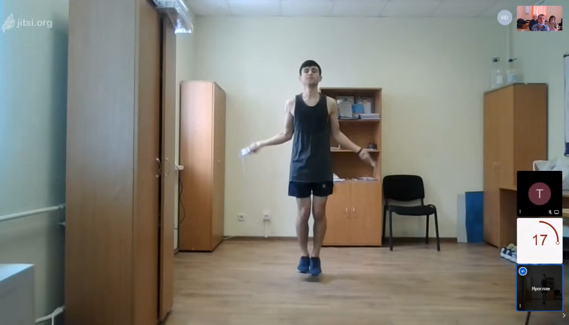 Перед началом зачетного норматива спортсмену необходимо было выполнить 7 пробных прыжков и показать счетчик повторно на вебкамеру. После того, как судейская комиссия убеждались в правильности работы счетчика, спортсмен выполнял упражнение по установленному электронному таймеру (секундомеру) на мониторе.