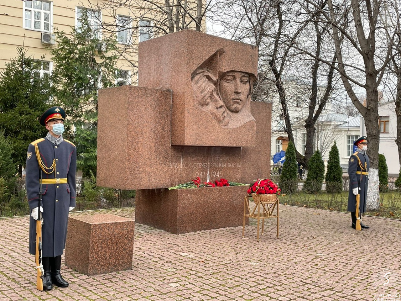 Торжественный вечер, на который были приглашены руководители Университета, ветераны и сотрудники ФСБ РФ, друзья и соратники Н.В. Троян, представители общественных организаций, начался с возложения цветов к мемориальной доске с барельефом Надежды Троян и к памятнику врачам, погибшим в годы войны.