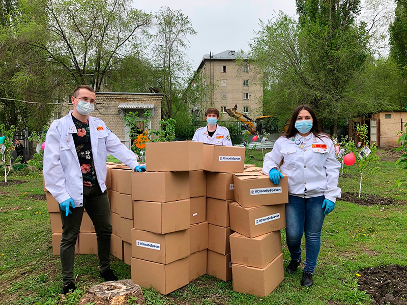 В минувшем году волонтеры СГМУ с особым вниманием относились к врачам, которые с возросшей нагрузкой работают в период эпидемии коронавируса: была организована доставка благотворительной помощи, проведены флешмобы, создана фотогалерея с портретами медиков, работающих в инфекционном госпитале Университетской клинической больницы № 1 им. С. Р. Миротворцева.