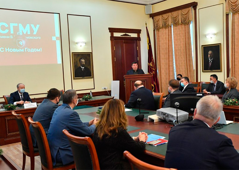 Ректор Сеченовского университета отметил, что важную роль в системе здравоохранения региона играет СГМУ — вуз с мощной клинической и научной базой. Научный потенциал нашего университета как никогда востребован для спасения жизней и сохранения здоровья жителей региона, которые столкнулись с ранее неизвестным заболеванием. Петр Глыбочко посоветовал активнее привлекать к работе в ковид-госпиталях молодые врачебные кадры, выпускников СГМУ.