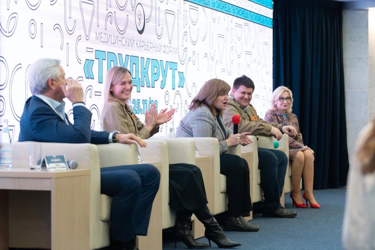 Справочно: Цель проведения Медицинского карьерного форума #ТрудКрут – создание и улучшение условий труда молодых специалистов сферы здравоохранения через повышение профессиональной мотивации и получение положительного опыта работы по специальности в медицинском учреждении в составе студенческих медицинских отрядов.