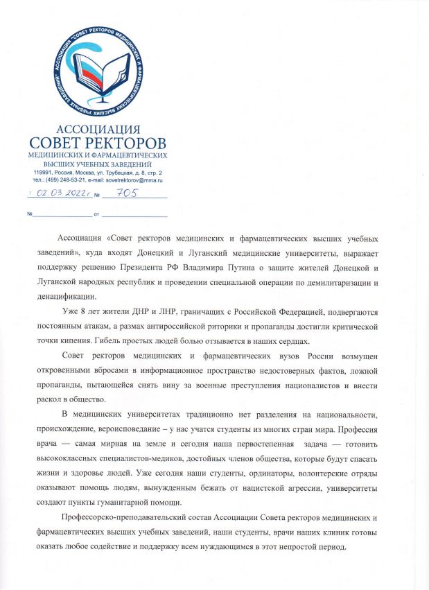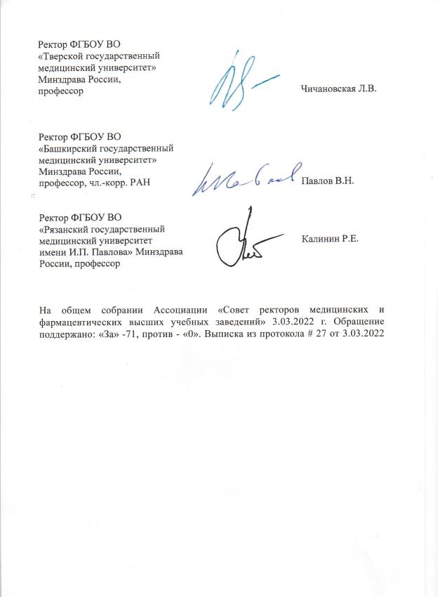 Обращение Ассоциации "Совет ректоров медицинских и фармацевтических высших учебных заведений"