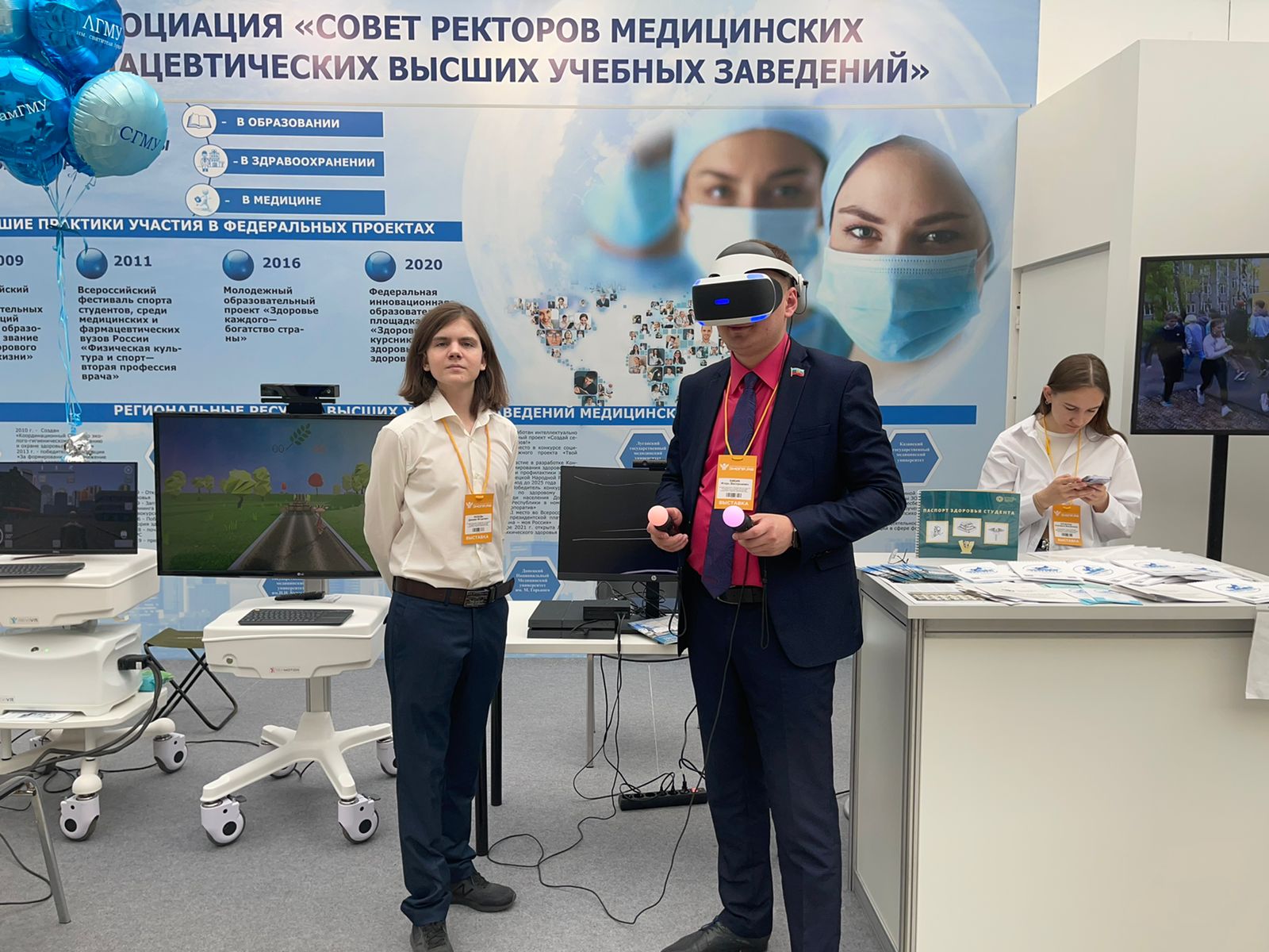 Насыщенную выставочную программу на стенде Ассоциации «Совет ректоров медицинских и фармацевтических высших учебных заведений» подготовили ведущие ВУЗы: ФГАОУ ВО «Первый Московский государственный медицинский университет им. И.М. Сеченова» Минздрава России, ФГБОУ ВО ВГМУ им. Н.Н. Бурденко Минздрава России, ФГБОУ ВО СГМУ Минздрава России, ФГБОУ ВО ВолгГМУ Минздрава России, ФГБОУ ВО СамГМУ Минздрава России, ФГБОУ ВО Астраханский ГМУ Минздрава России, ФГБОУ ВО «СтГМУ» Минздрава России. В работе конференции также приняли участие представители ГОО ВПО ДОННМУ им. М. Горького и ГУ ЛНР «ЛГМУ им. святителя Луки».